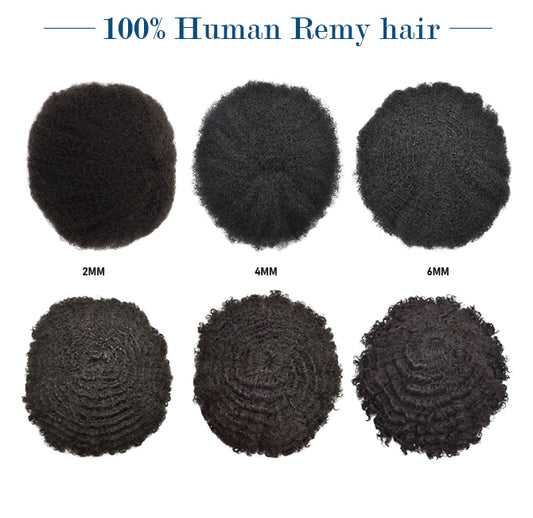 100%Human Hair Black Color 4mm Afro Kinky Curly Super Fine Full Lace Silk Top African Men Wig Toupee for Men