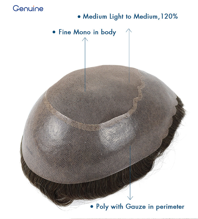 Ares Fine Mono with Skin Human Hair Hairpieces Replacement System for Men Toupees Human Hair Hairpieces