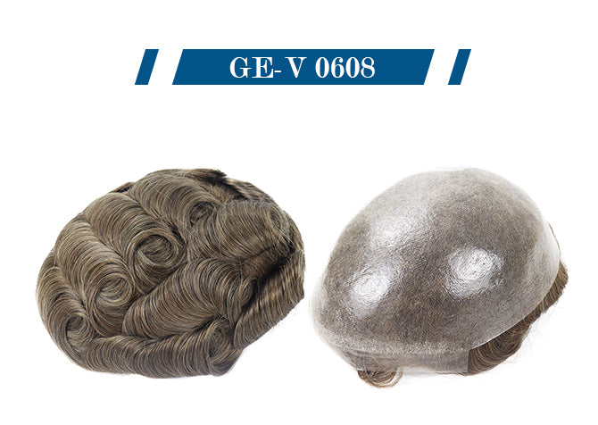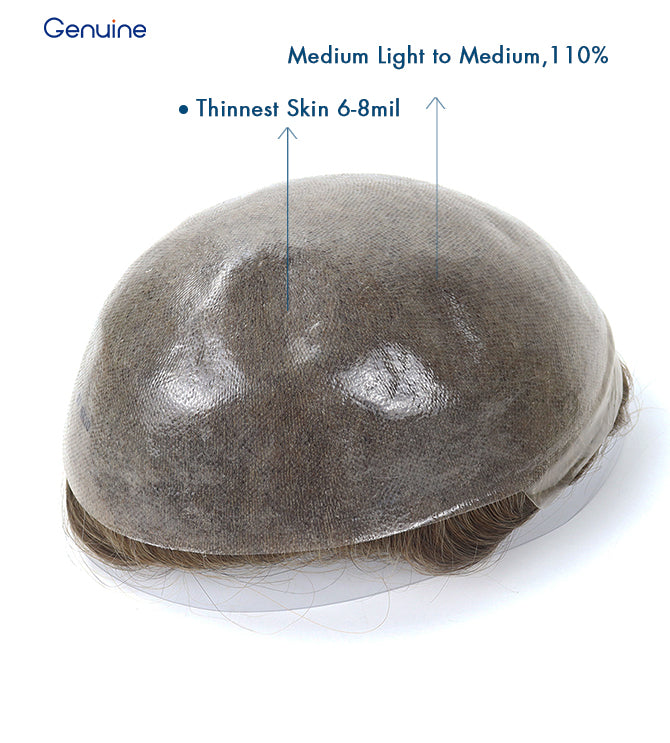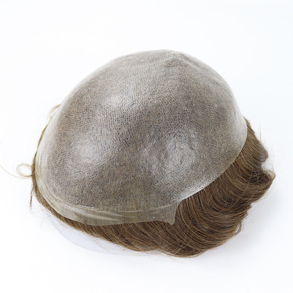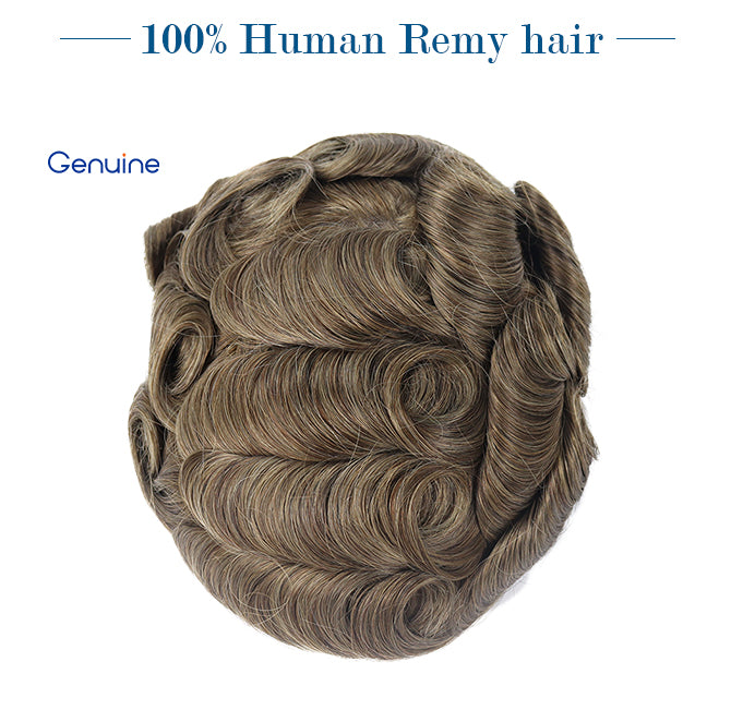 Toupee for Men Human Hair HairPiece 0.06mm Thin Skin V-loop Light Density Wig Replacement Systems Mens Wig
